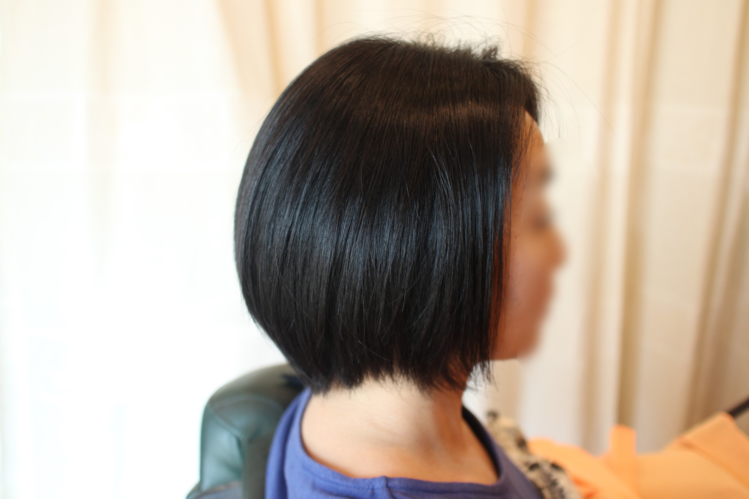 | 前髪〜フェイスライン縮毛矯正と ヘアスタイルの調整、全体カット |